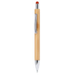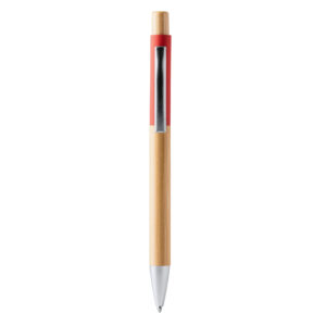 Шариковая ручка Eco line с бамбуковым корпусом, цветным указателем и металлическим клипсом. Серебристая кнопка, клип и наконечник. Прозрачная заправка jumbo диаметром 1,0 мм с синими чернилами.