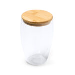 Двустенный стакан из боросиликатного стекла с бамбуковой крышкой. Идеально подходит для подарков и сюрпризов вашим клиентам. Емкость 350 мл.
