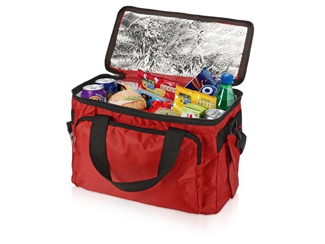 Вместительная сумка-холодильник (объем – 15 л.) «Камайоре» прекрасно подойдет не только для индивидуальных пикников, но даже и для доставки горячих продуктов (пиццы, например). С боков 2 кармана – один сетчатый с регулируемой затяжкой для бутылки. Другой для приборов, салфеток или других мелочей закрывается на липучку. Наружный слой сделан из полиэстера, на него может быть нанесена персонализация: имя владельца или логотип компании.