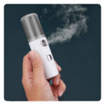 Использование – повернуть верхнюю крышку (резервуар) увлажнителя, перевернуть крышку (резервуар), заправить в резервуар 20 мл минеральной воды, плотно соединить с корпусом увлажнителя, нажать на кнопку включения и распылить на лицо, волосы, руки. Кожа будет моментально увлажнена. Помогает преобразить тусклую сухую кожу в здоровый и сияющий внешний вид.