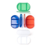 Легкая коробка для таблеток с тремя отделениями. Дизайн выполнен в полупрозрачном цвете.