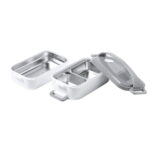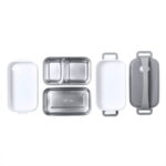 Термоланч-бокс с двумя контейнерами по 850мл и один из них разделен на два: 350 и 500мл. Контейнеры имеют металлические вставки из нержавеющей стали и крышки с уплотнительными резинками, для более плотного прилегания к емкостям. Идеально подходит для поддержания температуры жидкости или еды в контейнерах — в среднем 3-4 часа (в зависимости от изначальной температуры и температуры окружающей среды)Не рекомендуется для использования в микроволновой печи и посудомоечной машине.Индивидуальная упаковка — ПЭ пакет