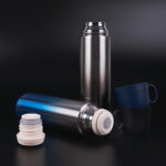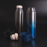 Вакуумный термос Gradient с двойными стальными стенками. Очень удобная форма крышки-чашки. Отделка — плавный градиент из серебряного в насыщенный синий цвет. Сохраняет тепло до 12 часов в зависимости от температуры окружающей среды.
